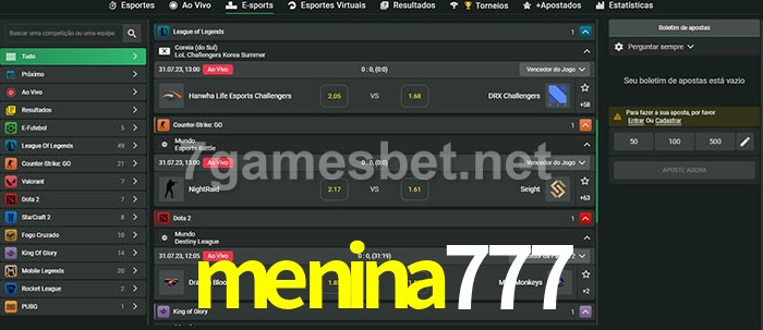 O menina777 oferece uma grande seleção de opções de apostas em e-sports com probabilidades competitivas